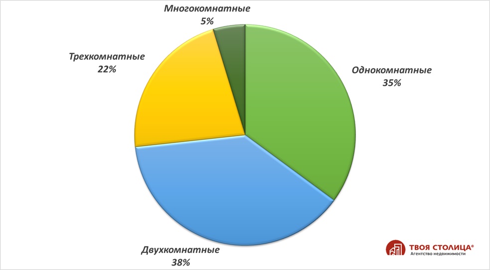 Объём предложения в июне оставался стабильным, и незначительные колебания — в пределах +/- 100 квартир — не оказали заметного влияния на ситуацию на рынке. Покупательский выбор сегодня в большей степени ограничивает не отсутствие вариантов, а завышенные ожидания продавцов. Сейчас достаточно быстро из предложения вымываются квартиры, выставленные по рыночной цене. Так, доля квартир, проданных с помощью Агентства недвижимости «ТВОЯ СТОЛИЦА» в течение двух недель, стабильно держится на 40%, и уровень торга в таких сделках минимален. В то же время, квартиры с завышенной ценой продолжают висеть в базе предложения нашего города месяцами. Это подчёркивает тот факт, что цена — ключевой фактор, определяющий скорость продажи.