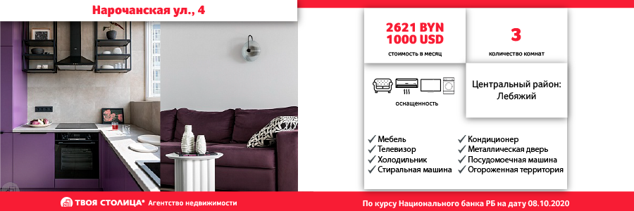 К слову, специалисты «ТВОЯ СТОЛИЦА∙АГЕНТСТВО НЕДВИЖИМОСТИ» ведут на YouTube-канале рубрику, рассказывая об арендном жилье повышенной комфортности в ТОП-5 районах Минска. На канале опубликовано уже 2 выпуска: 1 место и 2 место в рейтинге. Скоро ожидается выпуск следующего ролика. Подписывайтесь на канал, следите за новостями!