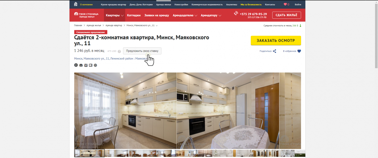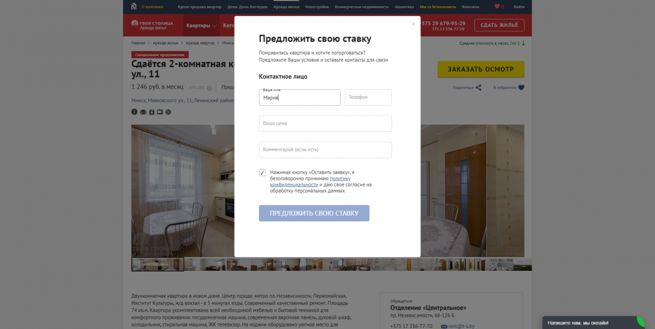 Второе нововведение – кнопка «Предложить свою ставку» – это своего рода палочка-выручалочка для тех, кто не умеет, боится или по каким-либо другим причинам не торгуется. От Вас нужно только указать в форме ту арендную ставку, которую Вы готовы оплачивать, оставить всю необходимую информацию и контактные данные для связи, – всё остальное сделают наши специалисты с многолетним опытом переговоров. Ведь когда профессионал вступает в диалог с собственником, то это, в большинстве случаев, приводит к положительным результатам, – объясняет Надежда.