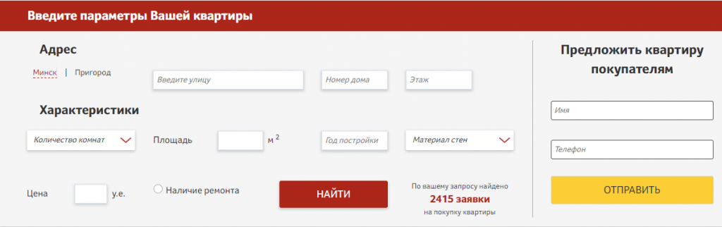 С появлением нового сервиса портал www.t-s.by открывает новые возможности для тех, кто хочет сначала продать недвижимость, и только потом купить. Для этой категории крайне важно понимать, на что можно рассчитывать и какую сумму придется добавить. Разделы «База покупателей и «База квартир» на сайте находятся рядом, давая возможность одновременно изучать спрос на свои квадратные метры, а также изучать предложения объектов на ориентировочную сумму от продажи.