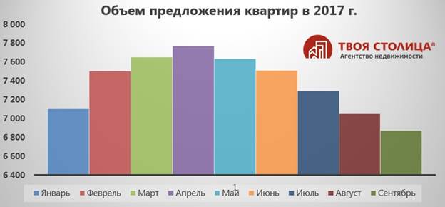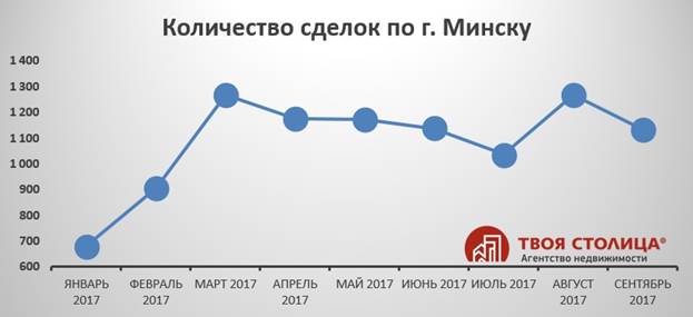 Фактор 1. В течение 2017 г. активность покупателей выше среднего для Минска уровня, который в 2014-2015 гг. находился на отметке 1 000 сделок в месяц. Максимально активными в текущем году оказались март и август, когда ежемесячно заключалось практически по 1 300 сделок.