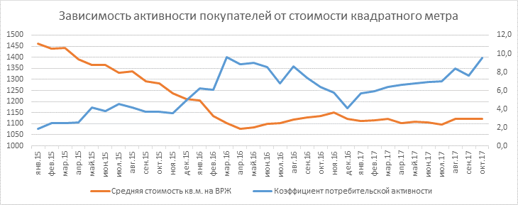 Что же происходит с ценами на квартиры? Если в 2016 году рост спроса был обусловлен активным снижением стоимости жилья, то покупательская активность 2017 года основывается на резко подешевевших кредитах. Так летом и осенью этого года более 30% сделок на вторичном рынке жилья и около 70% сделок с новостройками заключается с привлечением кредита. Собственно, при стабильном уровне цен, именно кредиты являются тем локомотивом, который толкает спрос вверх.