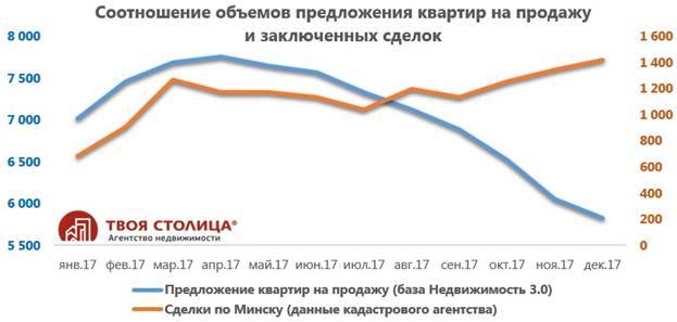 На фоне роста доступности кредитов, ушедший 2017 год обновил рекорд за последние, как минимум, 5 лет, по объему совершенных сделок купли-продажи квартир по г. Минску. Их количество за 2017 г. превысило показатель в 13,7 тыс.