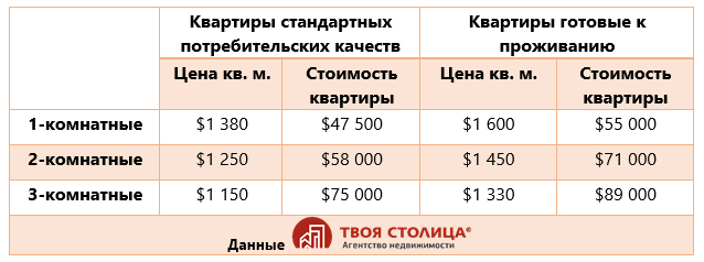 Более 35% сделок в декабре заключалось с готовыми к проживанию квартирами. Готовые к проживанию квартиры – это квартиры с хорошим ремонтом, и, частично, мебелью. Ремонт в таком жилье выполнен с использованием современных материалов и включает в себя качественные окна, межкомнатные двери, плитку и напольные покрытия. Из мебели, как правило, остается встроенная кухня с техникой и встроенные системы хранения (шкафы-купе либо гардеробная). Привлекательность этих квартир заключается в том, что благодаря наличию хорошего и при этом сделанного совсем недавно ремонта, будущий собственник может спокойно заезжать в квартиру и не думать об обновлении внешности квартиры еще долгое время. Диапазон цен на квартиры с качественным ремонтом - от 1300 до 1900 $/кв.м