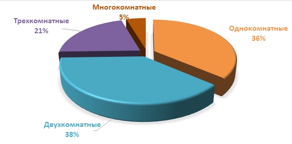 Чаще всего на вторичном рынке жилья приобретают однокомнатные и двухкомнатные квартиры. Их доля в предпочтениях покупателей существенно не отличается – 36% и 38% соответственно. Как правило, достаточно высокая доля двух- и трехкомнатных квартир в структуре сделок говорит о высоком уровне оптимизма на рынке. Это значит, что люди не только хотят, но и могут себе позволить улучшить свои жилищные условия.