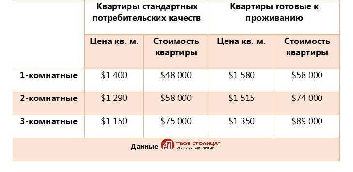 Если же говорить о средних ценах, сложившихся по итогам февраля, в разбивке – квартира стандартных потребительских качеств (обычная квартира, которую стоит отремонтировать) и готовая к проживанию (“въезжай и живи”), то, по данным «ТВОЯ СТОЛИЦА ∙ АГЕНТСТВО НЕДВИЖИМОСТИ»: