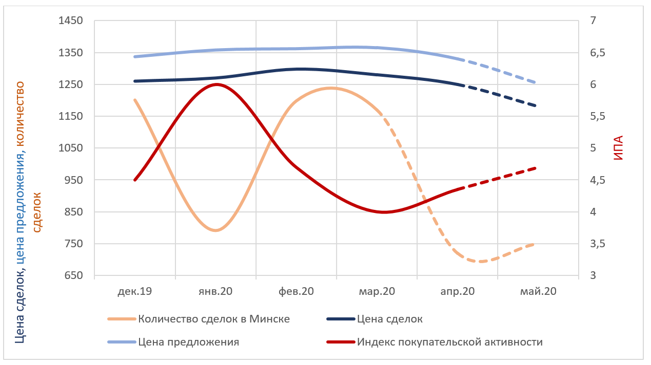 * При подсчете цен реальных сделок использованы данные по предварительным договорам «Твоя столица. Агентство недвижимости» как наиболее оперативно отражающие тренды. При подсчете цен предложения использована база объектов Недвижимость 3.0 портала realt.by. Расчет произведен для квартир стандартных потребительских качеств, из данных по ценам сделок и предложения исключены дорогие, эксклюзивные объекты.