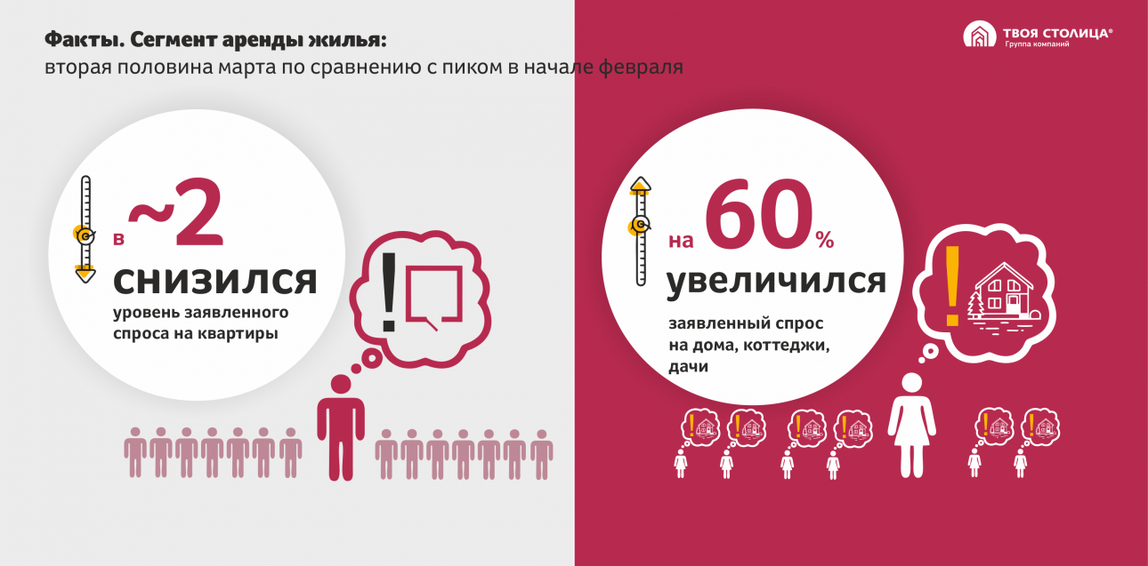 Помимо желающих «карантинить за городом», которые проявляют прежнюю активность, появились другие группы. Так, довольно быстро на рынке стали появляться арендаторы, желающие сменить арендуемую квартиру на более дешевую. И опять же, простоев избегают наиболее сговорчивые арендодатели.