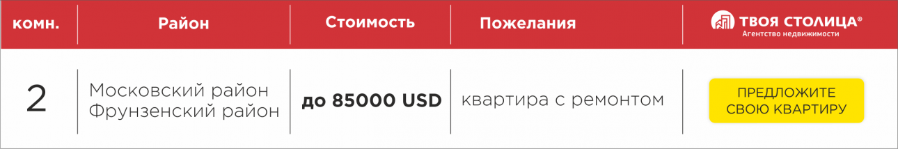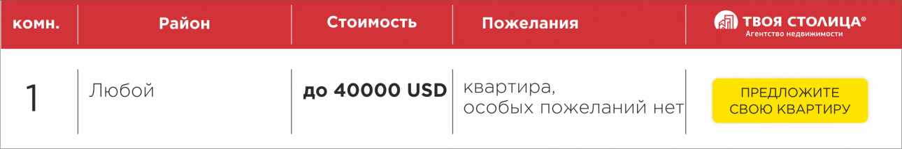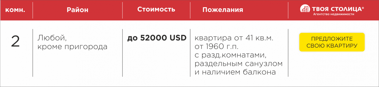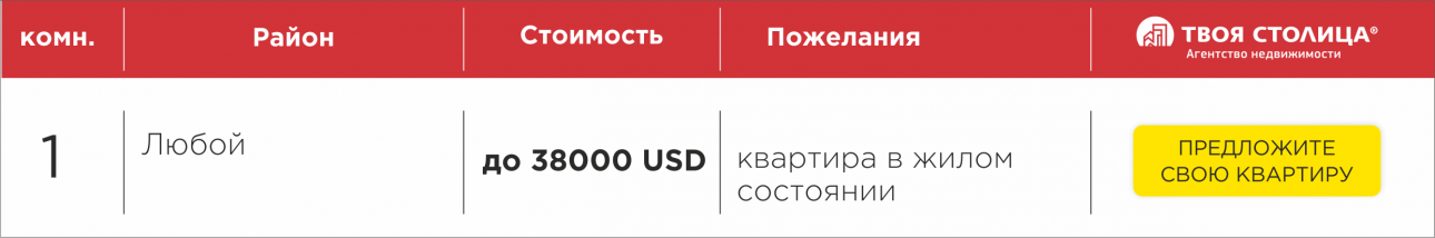 Ваш покупатель уже у нас в офисе! – говорят специалисты «ТВОЯ СТОЛИЦА. АГЕНТСТВО НЕДВИЖИМОСТИ». У нас есть реальные клиенты- покупатели, которые активно консультируются со специалистами по купле-продаже жилья, готовятся к обменам, разъездам, расширению жилплощади или переезду в новостройки. Многие готовы купить квартиру в качестве замены депозита или под сдачу в аренду, кто-то ищет жилье для выросших «наследников», кому- то нужно «закрыть» подходящим вариантом цепочную сделку.