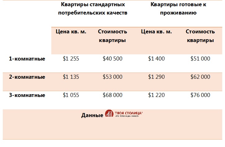 Если говорить о реально складывающихся в середине ноября ценах, то в разбивке – квартира стандартных потребительских качеств (обычная квартира, которую стоит отремонтировать) и готовая к проживанию квартира (“въезжай и живи”), стоимость квадратного метра и медианный уровень стоимости квартиры сформировались на уровне: