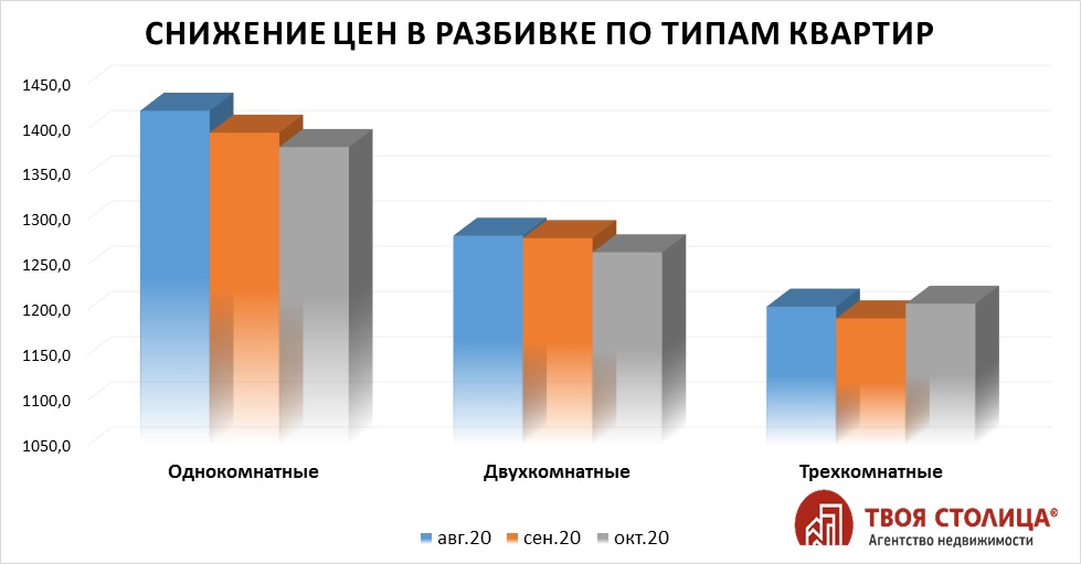 В целом стоит отметить, что цены на однокомнатные квартиры снижаются быстрее, чем цены «двушек» и «трешек».