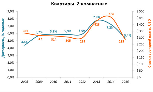 В таблице ниже приведены средняя стоимость двухкомнатной квартиры и средняя ставка аренды на сегодня, а также прогнозируемая доходность и окупаемость инвестиций в квартиру.