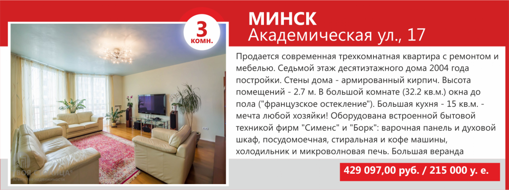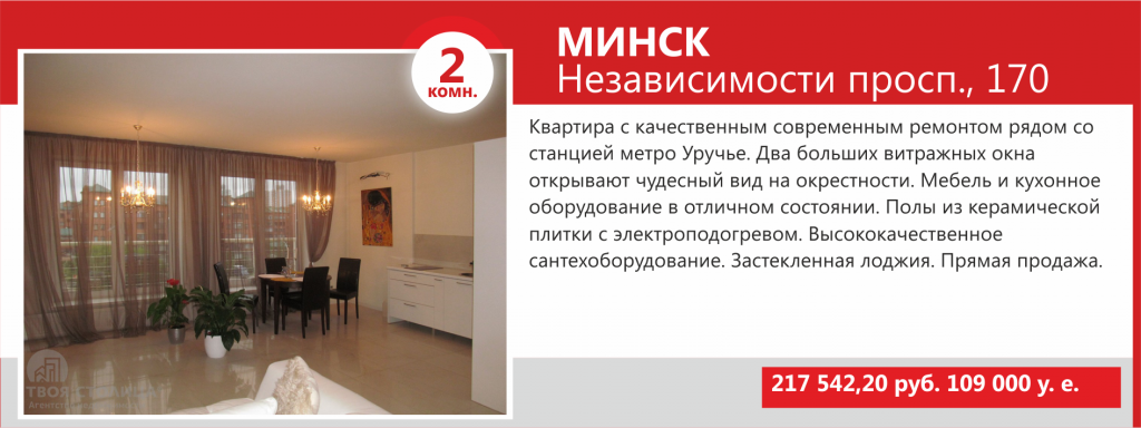 Интерес покупателей направлен на готовые к проживанию квартиры с современной мебелью, качественной сантехникой и отличным техническим оснащением. Немаловажное значение имеет престиж района и год постройки дома: в приоритете современные объекты и знаковые новостройки Минска.