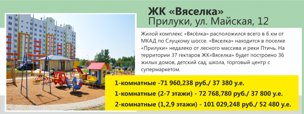 Хорошие новости и для тех, кто хотел бы приобрести квартиру без истории - от застройщика. В проектах «Липень» и «Вяселка» - участниках программы «Переезжаем в новостройку» имеются в наличии одно - и двухкомнатные квартиры по цене от $ 37380.
