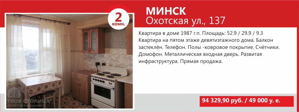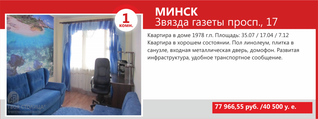 Сегодня в большинство заявок, которые мы получаем, фигурируют запросы на квартиры стоимостью $ 40-50 тысяч. – говорит заместитель директора по продажам на вторичном рынке жилья Светлана Куделко. И если в конце 2015 года, за эту сумму мы могли предложить только однокомнатные квартиры в Минске, то теперь покупатели имеющие на руках 50000 $ рассматривают приобретение двух- трехкомнатных квартир в столице и ближайшем пригороде.