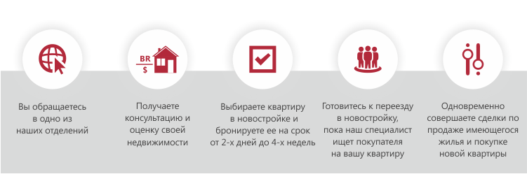 - одновременный поиск покупателя на квартиру и подбор варианта взамен;