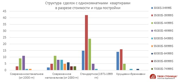 Так, наиболее оптимальная сумма, необходимая для приобретения однокомнатной квартиры, сейчас составляет порядка 35-40 тыс. USD. За такую цену можно приобрести квартиру стандартных потребительских качеств в домах 1971-1999 гп. Если же Вы располагаете меньшей суммой - порядка 30-35 тыс. USD - шанс приобрести квартиру тоже есть, но скорее всего это будет уже «хрущевка-брежневка», требующая вложений в ремонт.