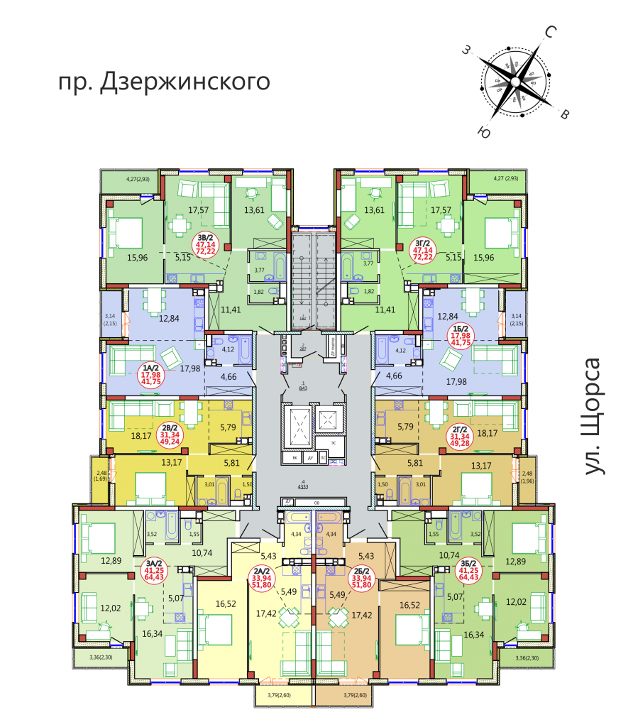 · 3-комнатные – от 64,64 до 72,41 квадратных метров.