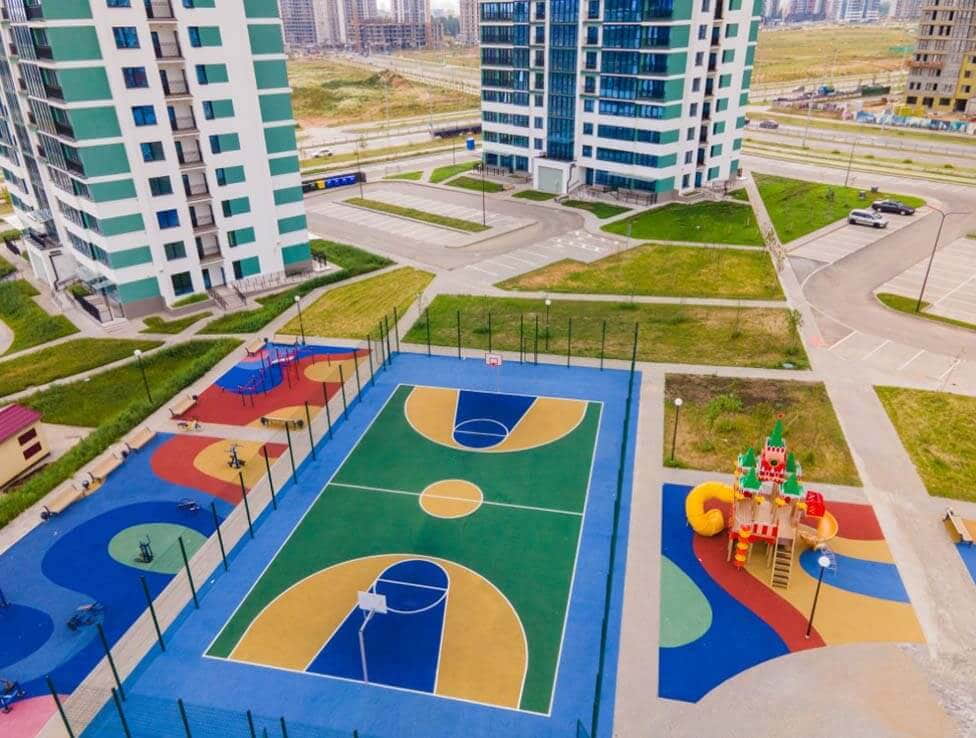 На первом этаже этого яркого дома – квартиры с отдельными входами и террасами. Таким образом даже в центре активного квартала создаётся ощущение частного дома. Придомовую территорию вы сможете использовать по своему усмотрению.