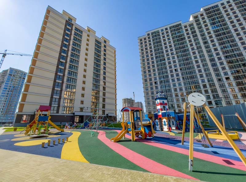 Квартал олимпийский, поэтому возле каждого дома обязательно возводятся современные детские и спортивные площадки, будет много зелени и парковки для велосипедов. В центре квартала уже строится школа, а значит скоро туда смогут ходить ваши дети! Вся остальная социальная инфраструктура появится в соседних кварталах!