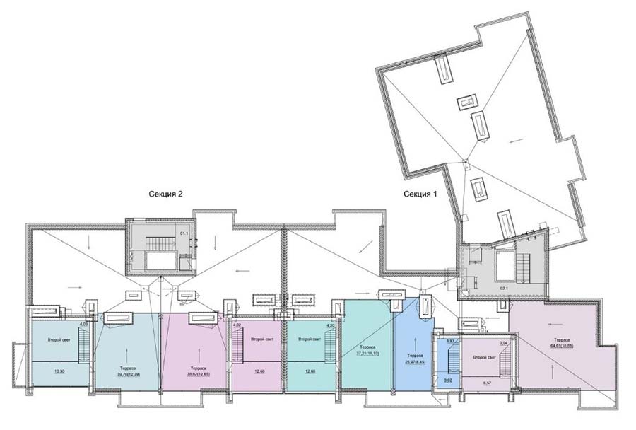 - В некоторых квартирах на последних этажах есть система второго света и терраса на крыше