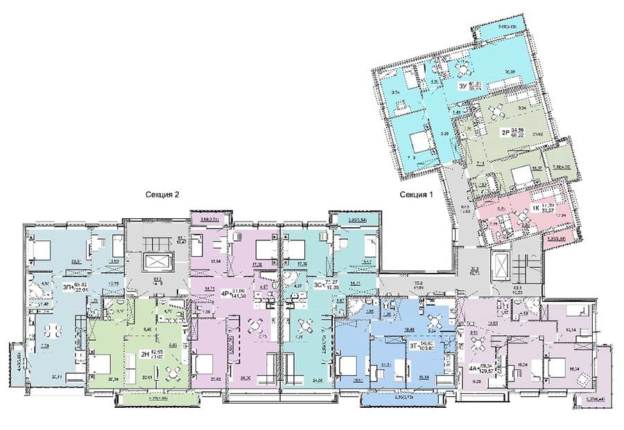 - состоит из 2 секций и 6 этажей –малоэтажная застройка, всего 45 квартир;