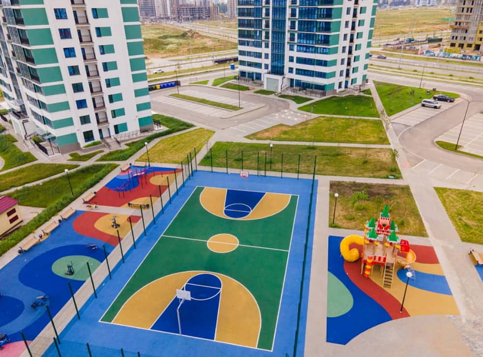 Возле каждого дома будут современные игровые и спортивные площадки.