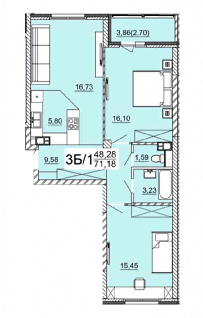 3-комнатные квартиры площадью 70–71 кв. м предлагаются по цене 1250 USD за кв. м. Общая стоимость квартир — 88 688–88 913 USD.