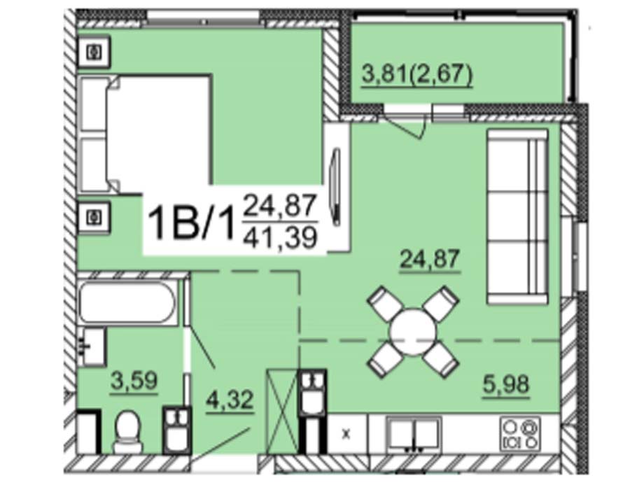 1, 2-комнатные квартиры площадью 41–43 кв. м предлагаются по цене 1400 USD за кв. м. Общая стоимость квартир составляет 57 700–60 270 USD (148 910–155 520 BYN).