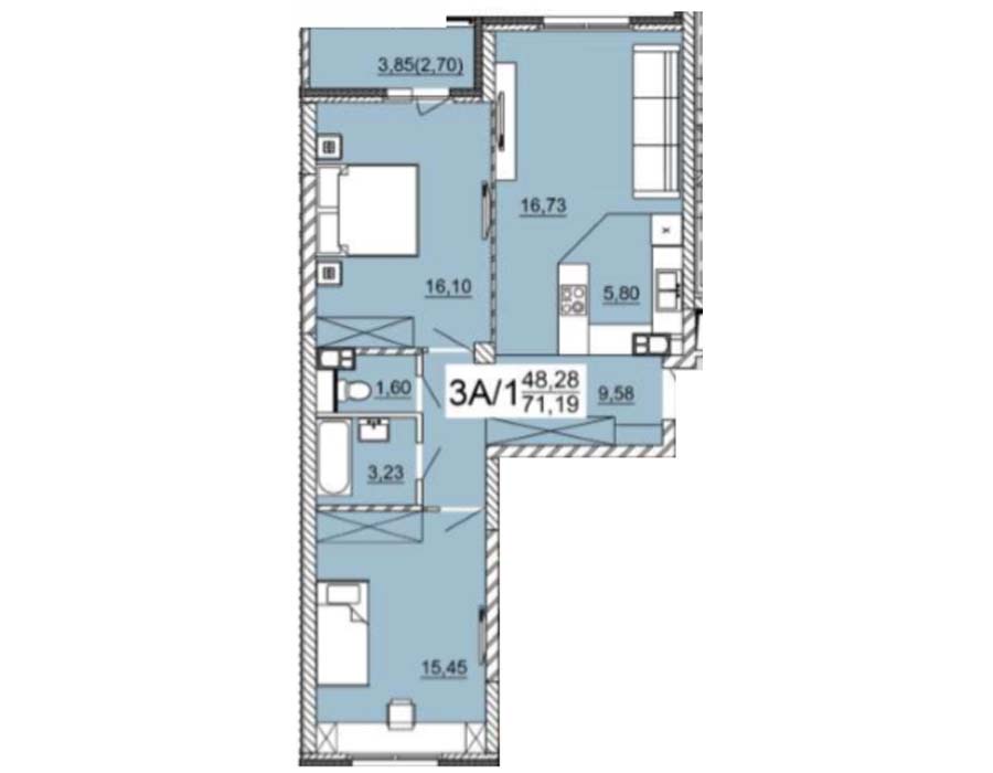 3-комнатные квартиры площадью 70–71 кв. м предлагаются по цене 1280 USD за кв. м. Общая стоимость квартир 91 060–91 110 USD (234 970–235 100 BYN).