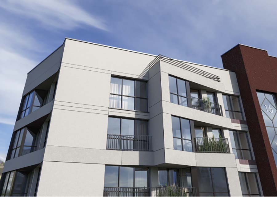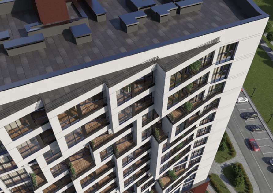 Фасад новостройки «Белград» будет выделяться оригинальным архитектурным решением. Его особую эстетику задают треугольные балконы и остекленные лоджии, выступающие на фоне гладких стен основной части здания.
