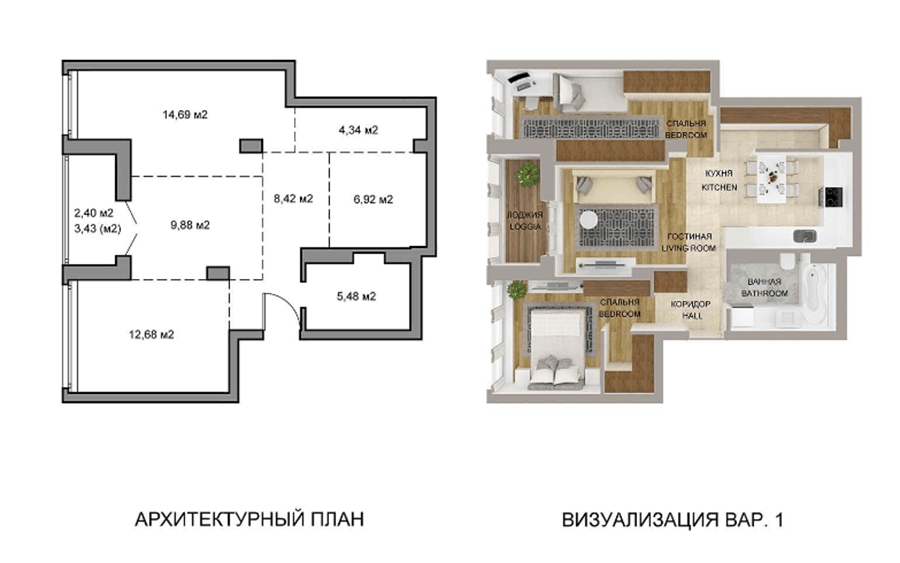 3. В строящемся доме «Самба» продаются 3-комнатные квартиры-студии, цена за кв. м — 900 евро, стоимость квартиры — 48 402 евро. Купить квартиру можно с привлечением кредита либо в рассрочку на 5 лет.