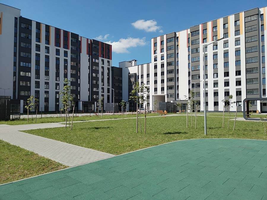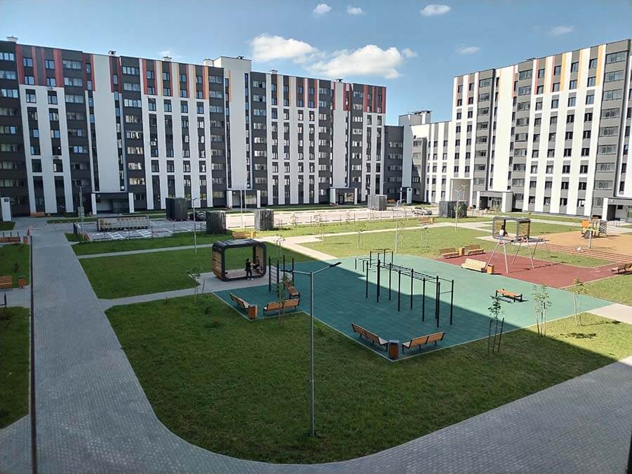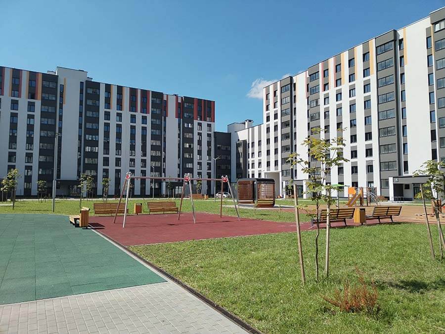 Итак, давайте знакомиться: жилой комплекс «Матвеевский». Это прекрасный вариант тихого зелёного уголка с развитой инфраструктурой и удачным местоположением! Комплекс находится в Московском районе г. Минска, в 700 м от станции метро «Грушевка» и проспекта Дзержинского. Что касается инфраструктуры, то район уже давно обжит и все необходимое для комфортной жизни присутствует: это детские сады (один из садов находится буквально в нескольких метрах от комплекса), школы, больница, взрослые и детская поликлиники, медцентр, аптеки. В нескольких остановках общественного транспорта два торговых центра: «Outleto» (проспект Жукова, 44) и «Globo» (ул. Уманской, 54). Напротив дома — небольшой сквер «Полянка».