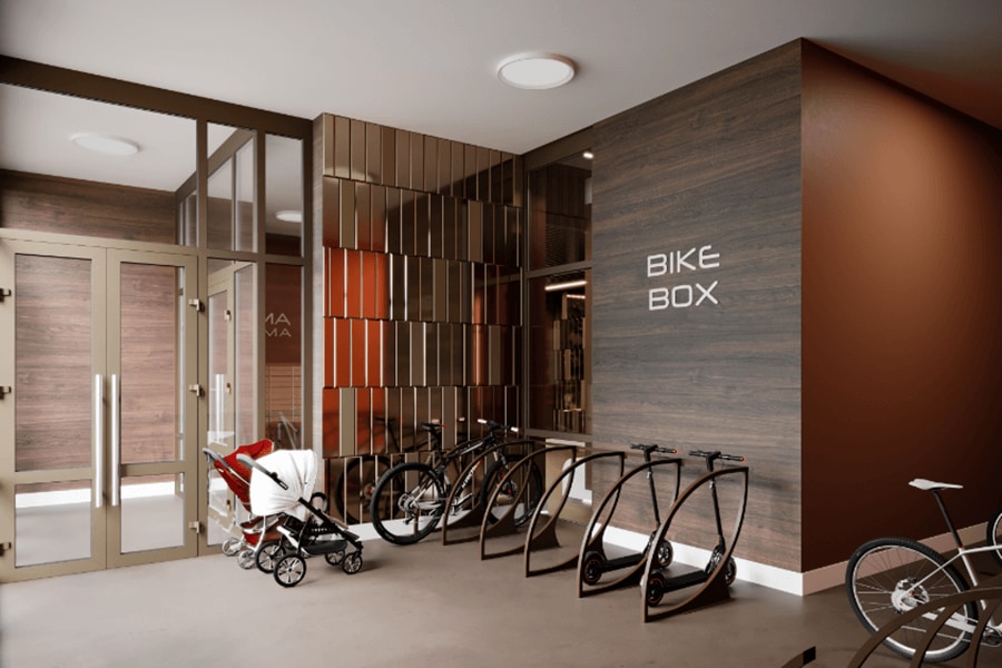 Здесь всё создано для удобства жителей и гостей комфортабельного дома: большая санитарная комната (более 7 кв. м) с пеленальным столиком, зона отдыха, встроенные ящики для получения корреспонденции, букшеринг, расширенное пространство для хранения колясок и велосипедов (дополнительные велопарковки предусмотрены с наружной стороны дома). На первом этаже будут расположены 5 помещений для коммерции, где вы можете успешно стартовать со своим бизнес-проектом — открыть бутик или кафе, магазин вкусной еды или полезных товаров для дома.