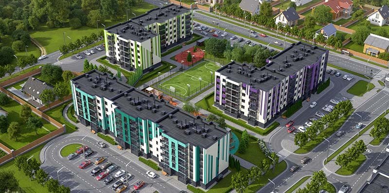 Всего в комплексе будет 21 жилой дом. Вот как «Соколиный край» выглядит на рендерах.