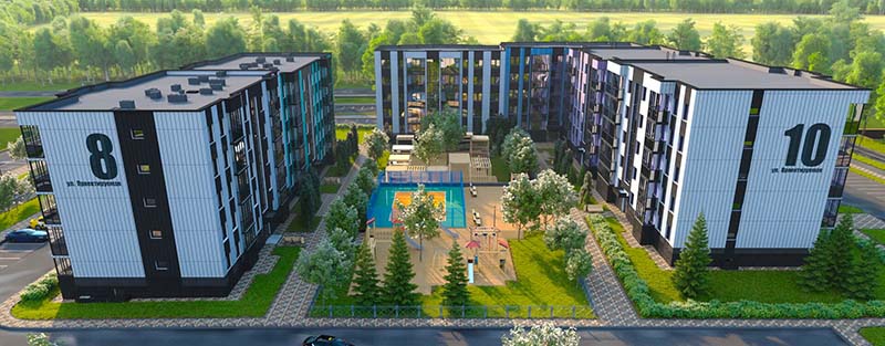 В ближайших планах — обшивка фасадов линеарными панелями, установка окон и дверей, благоустройство территории, дорог. Сроки сдачи второй очереди — декабрь 2022 года. Жилье будут сдавать с черновой отделкой, газовыми котлами, унитазами, входными металлическими дверями, счетчиками и деревянными дверями на кухню.