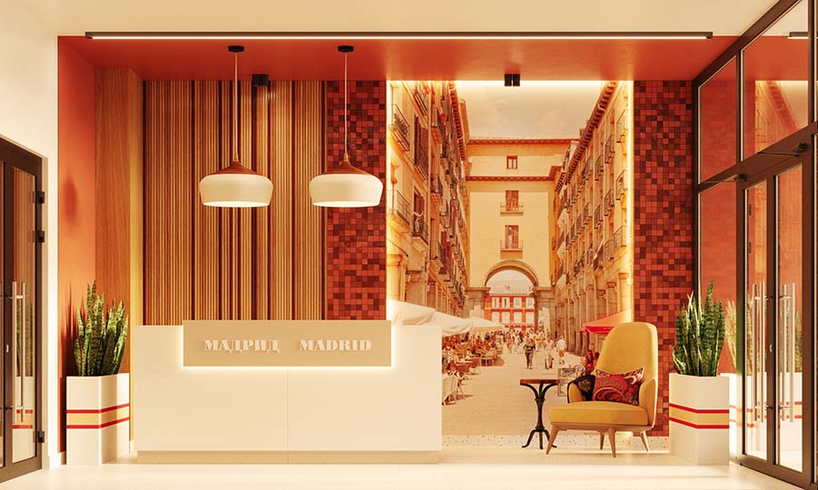 - стойка для консьержа, за которой открывается романтичная картина уютных улиц столицы Испании;