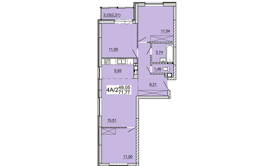 Редкое предложение на рынке — компактная 4-комнатная квартира площадью около 72 кв. м, при этом жилые комнаты более 11 кв. м. Квартира на три стороны света, два окна в кухне-гостиной, раздельный санузел.
