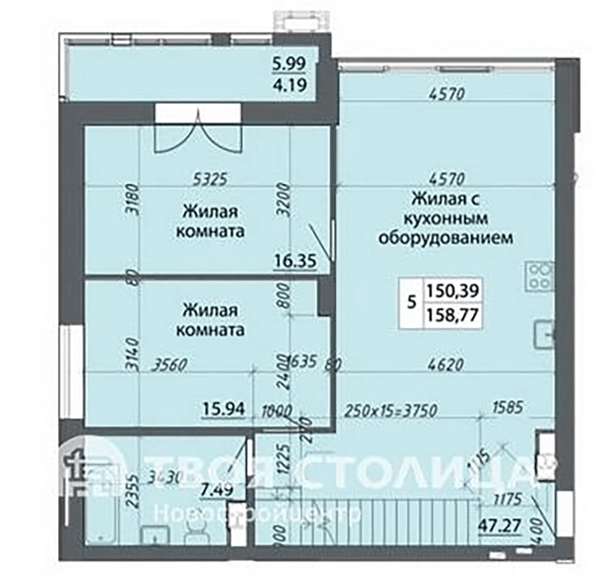 - двухуровневая квартира с панорамными окнами: 1900 BYN (706 USD) за кв. м.