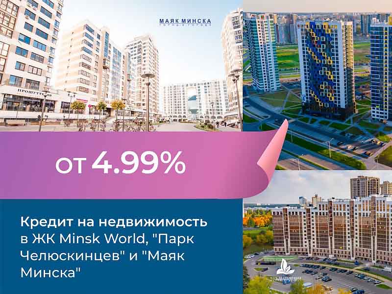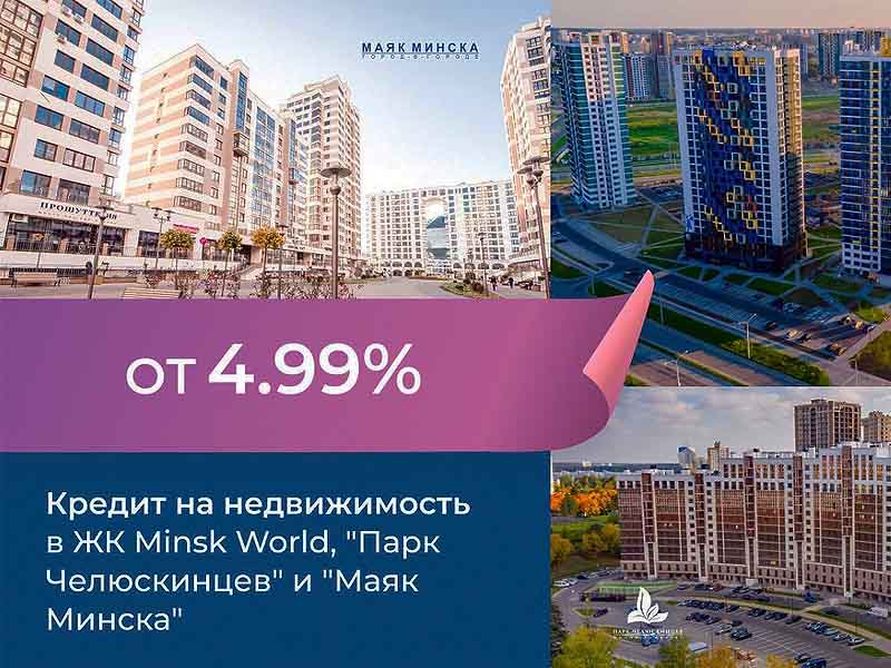 Если вы хотите приобрести квартиру в кредит, то спешим вас обрадовать так как сейчас действуют низкие ставки по кредиту в многофункциональных комплексах: «Минск Мир», «Парк Челюскинцев» и «Маяк Минска»: