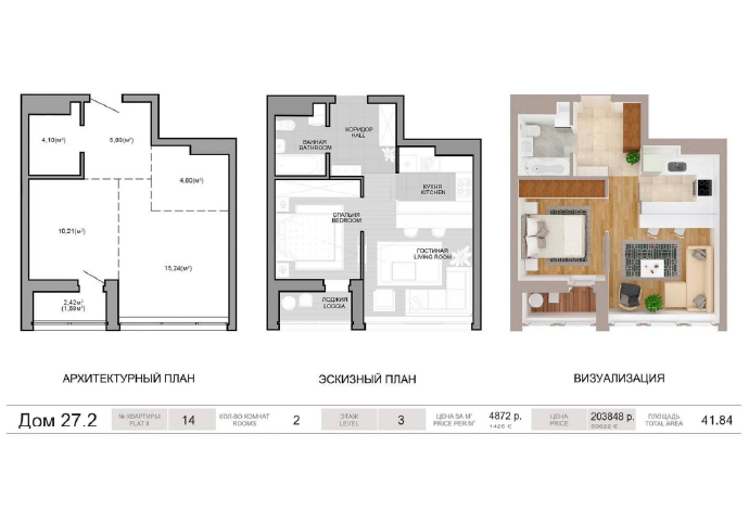 41,84 м2, дом 27.2 Центральный парк - сдача осень 2023.