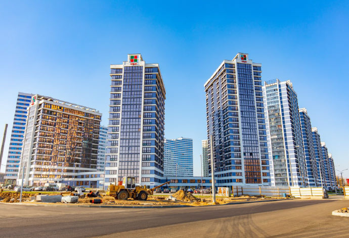 «Минск Мир» – это большой комплекс, разделенный на кварталы и состоящий из 100 домов. Каждый квартал имеет свое название и уникальную архитектуру, а инфраструктура района проектируется по концепции 15-минутного города, которая позволяет жильцам решать бытовые задачи быстро и в пределах комплекса.