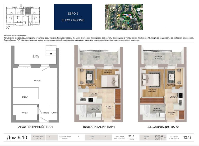 Цена квартиры — 48 180€, возможна покупка в кредит с ежемесячным платежом от 434 BYN.