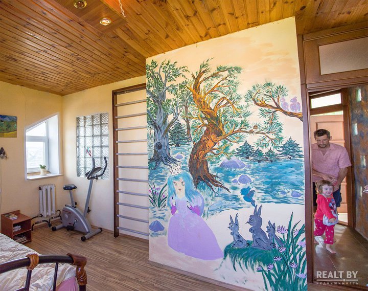 — Гостевой домик, конечно, нуждается во внутренней отделке. А вот основной дом полностью готов для проживания, здесь, на усмотрение будущих хозяев, можно будет сделать лишь косметический ремонт. К дому проведены все коммуникации — отопление, канализация, вода, центральный газопровод. В коттедже есть два камина — французский и открытый, кухня и вся необходимая мебель, — поясняет специалист по операциям с недвижимостью. — Место здесь очень хорошее — находится деревня совсем недалеко от Минска, но воздух чистый, рядом есть водоем и лесной массив.