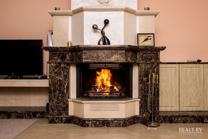 Центральным акцентом в доме является просторный холл с бильярдом, камином и панорамным остеклением в сад. Живой огонь не только радует глаз, но и всего за два часа прогревает большое помещение. Кроме гостиной в доме организованы три изолированные жилые комнаты с собственными санузлами.