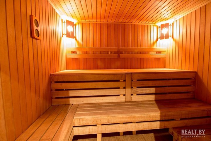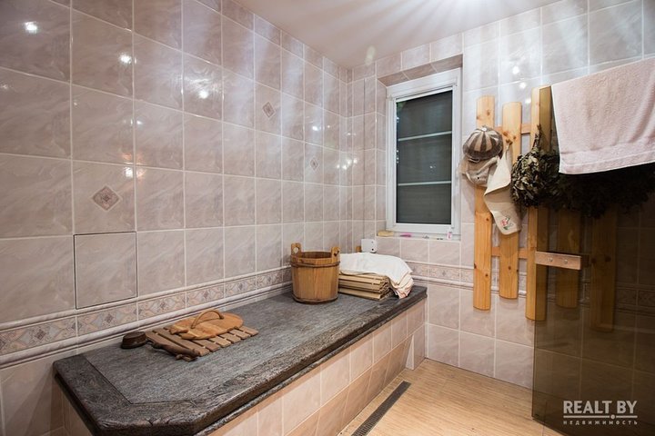 В коттедже оборудована русская баня с вместительным предбанником, душевой и лежанкой из гранита с подогревом.