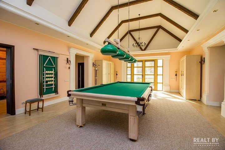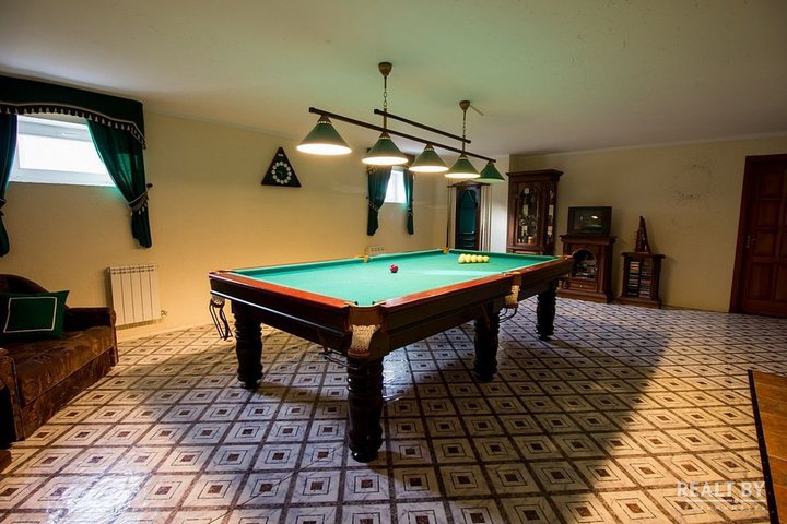 На цокольном этаже размещаются бильярдная с камином, подсобные помещения и сауна.