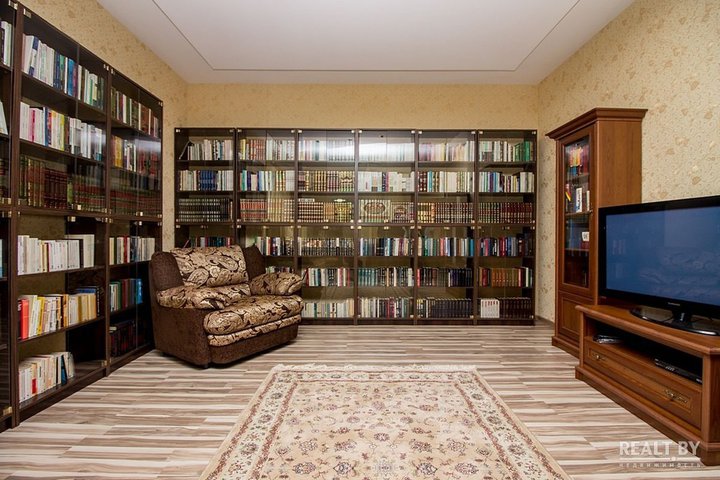 Первый этаж занимают просторная гостиная, кухня с выводом и подключением всех коммуникаций, санузлы и библиотека.