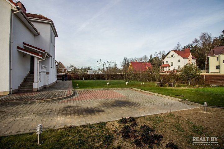 В здание вложено много средств и сил, все отделочные материалы высокого качества. Участок площадью в 20 соток огорожен капитальным забором, на территории организован декоративный газон, произрастают деревья и кусты, разбита площадка для беседки. К дому ведут хорошие подъездные пути.