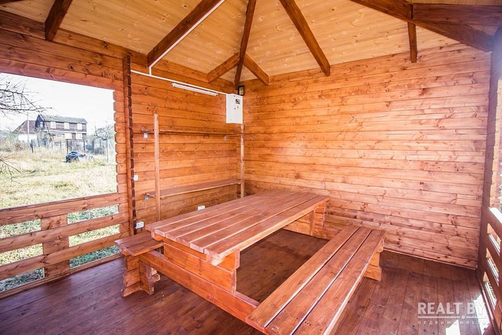 На участке также построена деревянная беседка с организованной в ней летней кухней, водопроводом сезонного действия, и отводом воды в местную канализацию. По словам хозяина дачи — это любимое место отдыха, будь то обед с семьей или теплая встреча с друзьями.